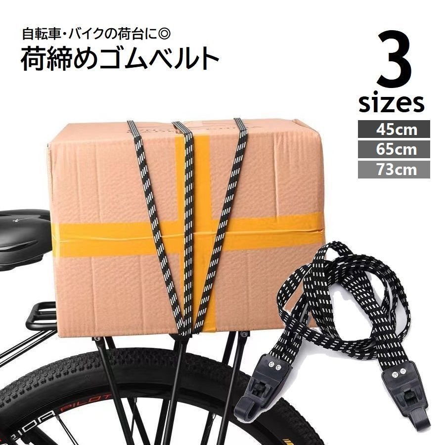 荷締めベルト 自転車 バイク荷台用 ゴムバンド 3連 45cm 65cm 73cm ゴムロープ ヘルメット 荷物固定 フック式 ゴム紐