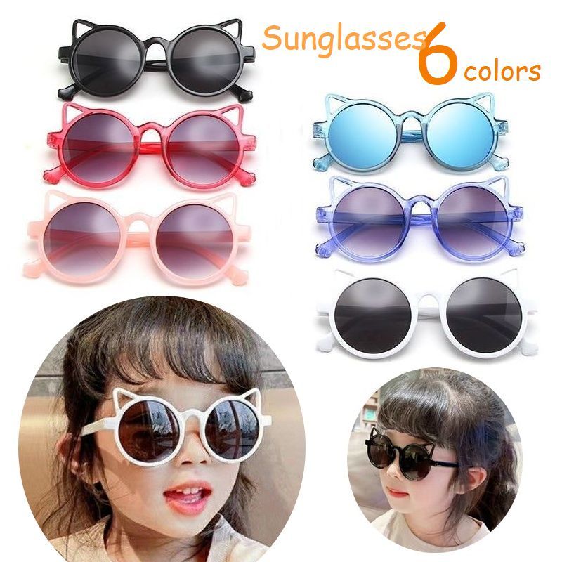 サングラス 子供用 ねこ耳付き ラウンドフレーム 丸型 ねこ型 キッズ こども用 アイウエア 女の子 男の子 カラーレンズ ファッション小物 クリア