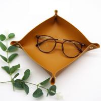 小物入れ トレイ トレー 卓上 机上 収納 スクエア 四角形 インテリア スナップボタン レザー調 フェイクレザー 単色 シンプル おしゃれ