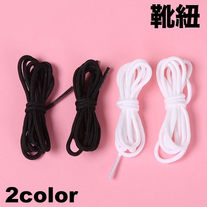 靴紐 シューレース 2本セット 1ペア 丸形 丸紐 シンプル 単色 無地 男女兼用 大人 子供 ユニセックス 靴ひも くつひも 運動靴 スニーカー ブ