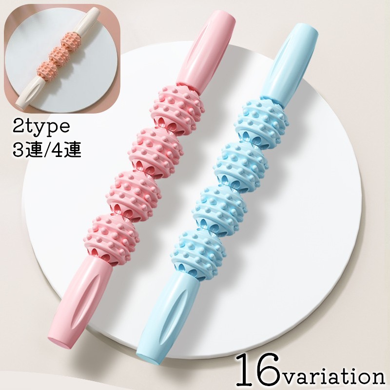 ローラー ストレッチローラー グリップ付き 持ち手付き スティックタイプ 筋肉ほぐし 突起 ポツポツ付き 回転 健康 ほぐし リフレッシュ レディース