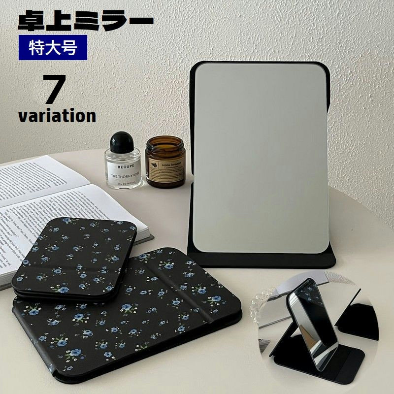 卓上ミラー 鏡 スタンドミラー 折りたたみ 化粧鏡 四角形 スクエア 花柄 かがみ 大きめ レディース 女性 折り畳み テーブルミラー メイクアップ