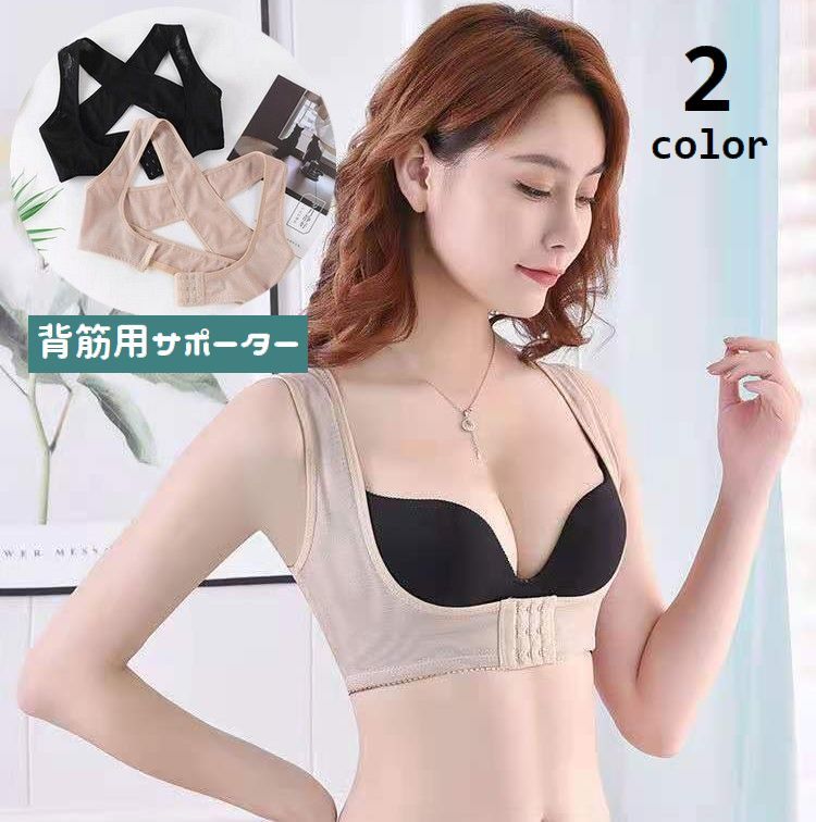 背筋用サポーター 姿勢補正ベルト レディース 女性用 姿勢サポート 猫背対策 フロントホック 3列ホック 3段ホック 前ホック クロスバック 肩甲骨
