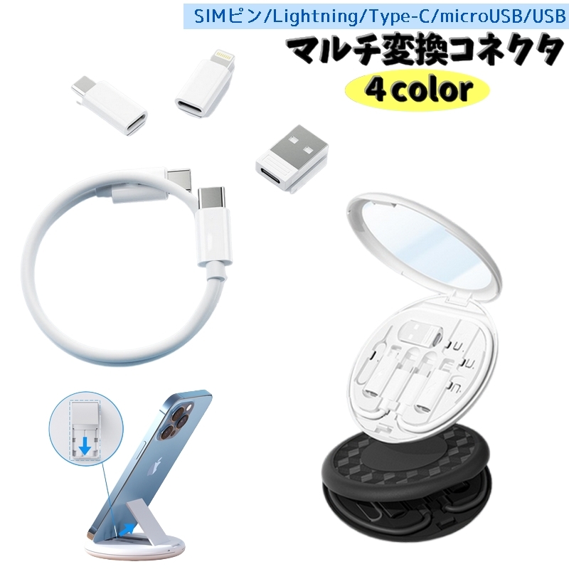 マルチ変換コネクタ スマホスタンド付き SIMピン Lightning USB Type-C microUSB USB-C ケーブル アダプタ セット