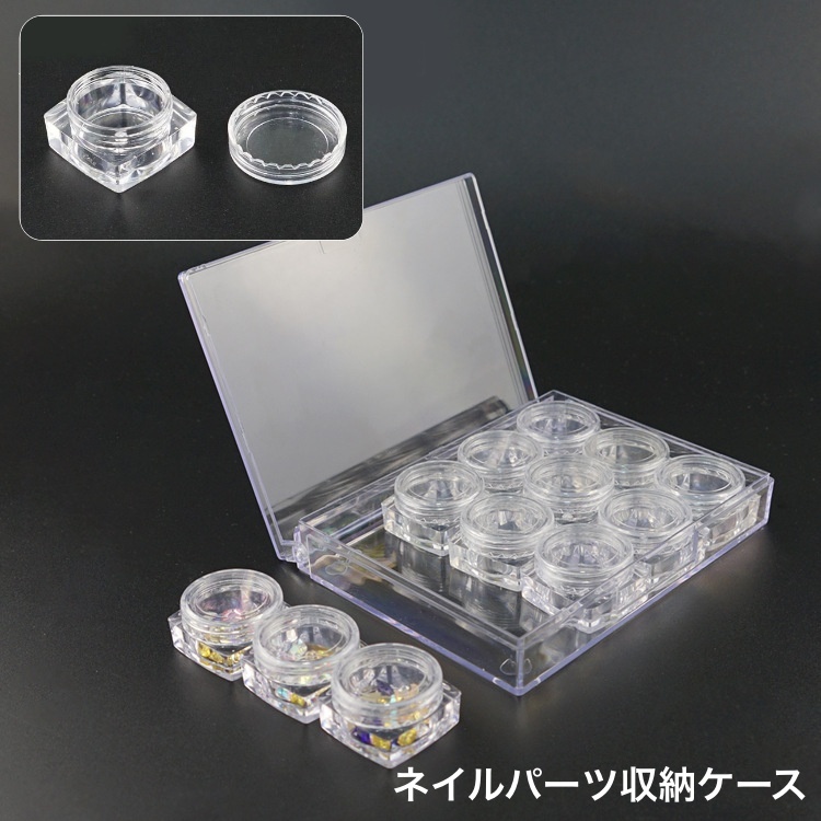 ネイルパーツ収納ケース 小分けケース ラインストーンケース 12個 小分け コンパクト 透明 クリア 携帯 持ち運び アクセサリーケース