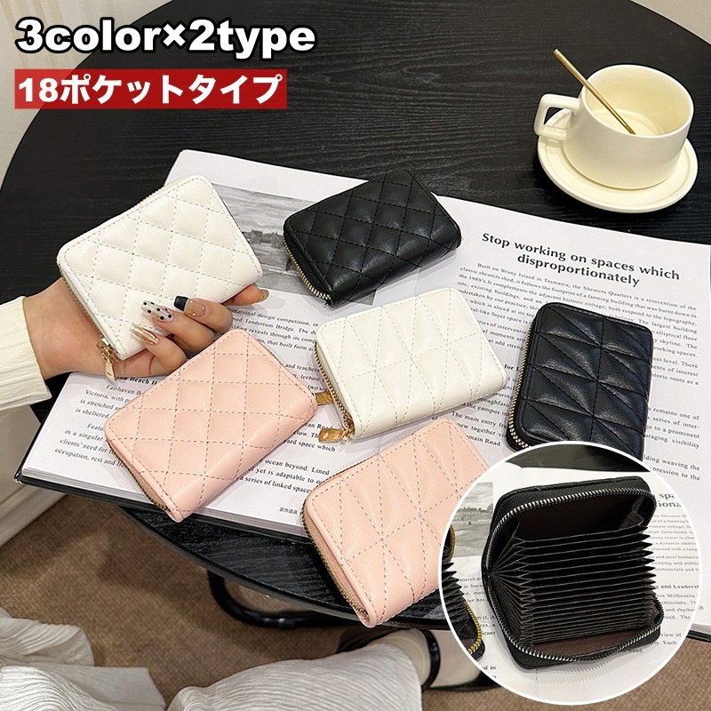 カードケース じゃばら式 18ポケット レディース 女性 カードホルダー 小銭入れ コインケース ミニ財布 レザー調 蛇腹 ジャバラ 高見え 無地 シ