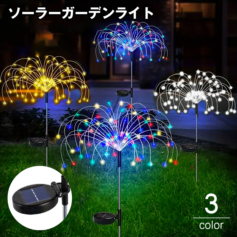 ソーラーガーデンライト ソーラーライト LED 花火 イルミネーション 地中埋め込み ソーラーパネル 太陽光 充電 自動点灯 屋外装飾 防水 リチウム
