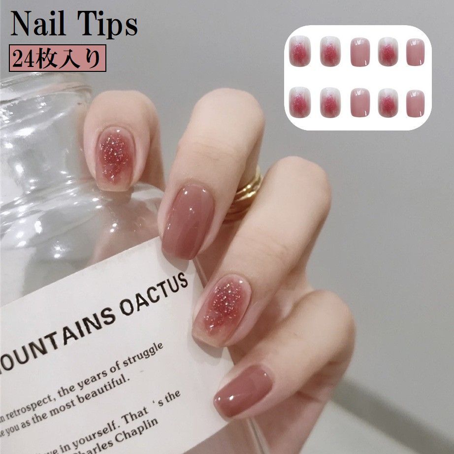 ネイルチップ 24枚 手の爪用 ネイルアート用品 ラメ グラデーション 無地 単色 シンプル かわいい おしゃれ セルフネイル つけ爪 両手 ピンク