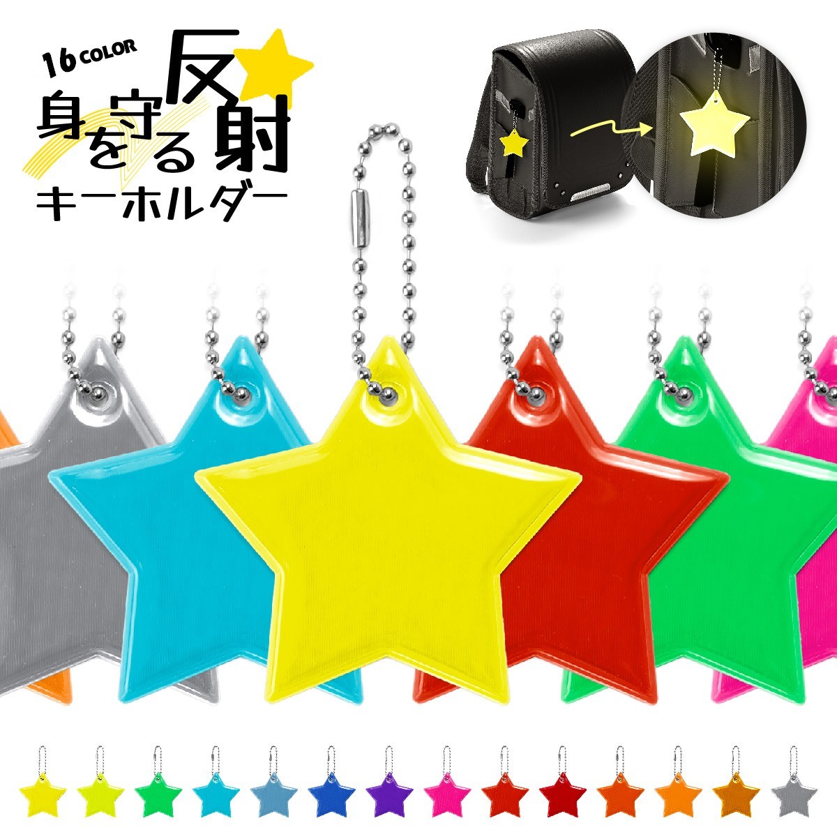 反射キーホルダー リフレクター キーリング チャーム 光る 夜間 星 スター 交通安全 安全グッズ 通学 通勤 塾 習い事 散歩 子供 大人