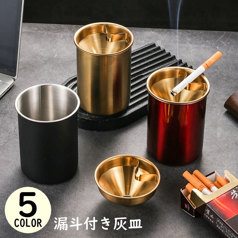 灰皿 アッシュトレイ アッシュシリンダー ステンレス製 喫煙具 吸い殻入れ 卓上 車用 車載 漏斗 筒型 筒形 大容量 水洗い可能