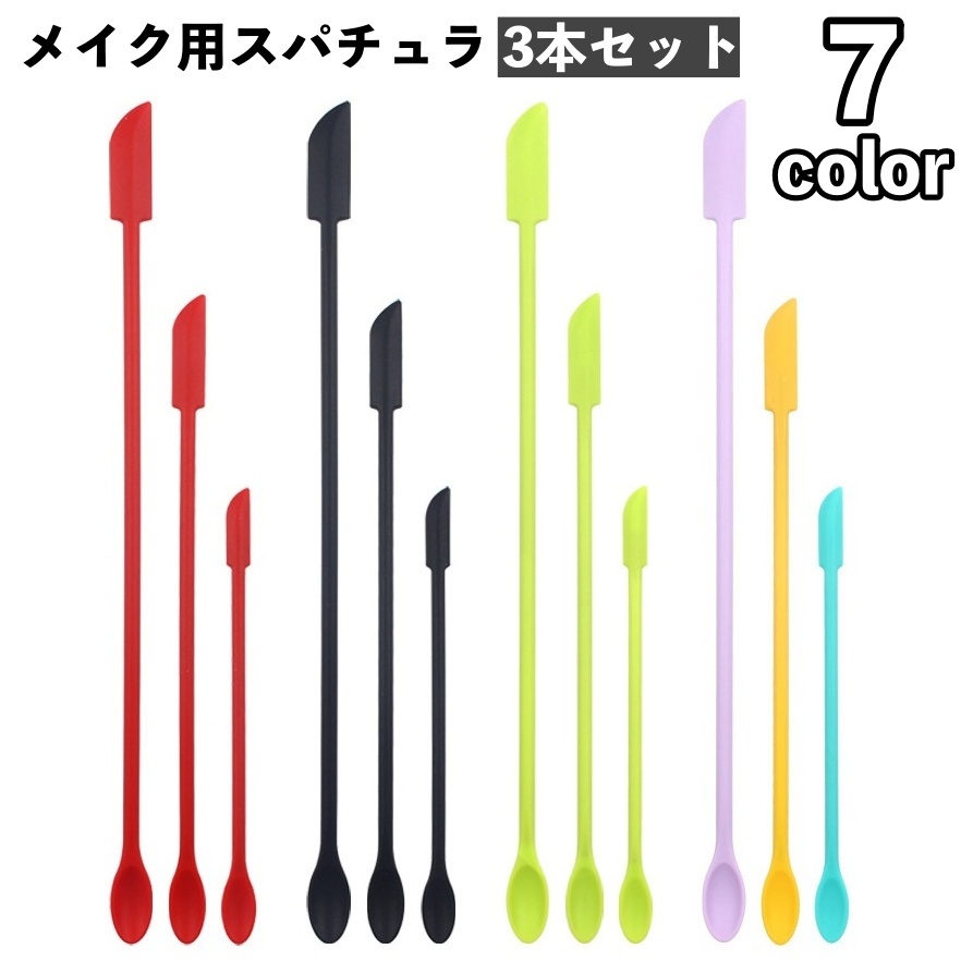 スパチュラ 3本セット メイク道具 化粧用品 ヘラ スティック スプーン すくう 取る シリコン製 ソフト 柔らかい コスメ用品