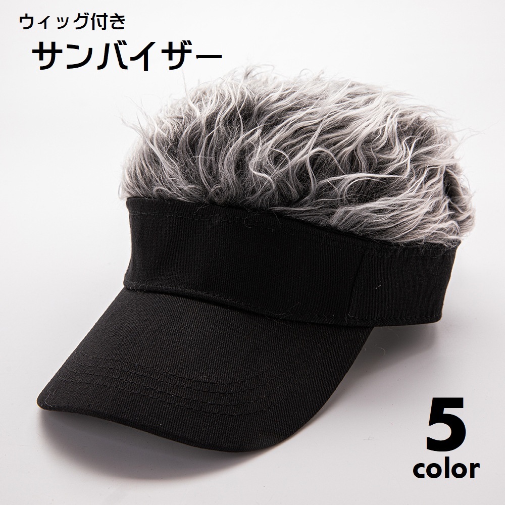 ウィッグ付き サンバイザー 帽子 簡単 イメチェン かつら付き ヘアバイザー メンズ 男性 レディース 男女兼用 面ファスナー ゴルフ テニス 釣り
