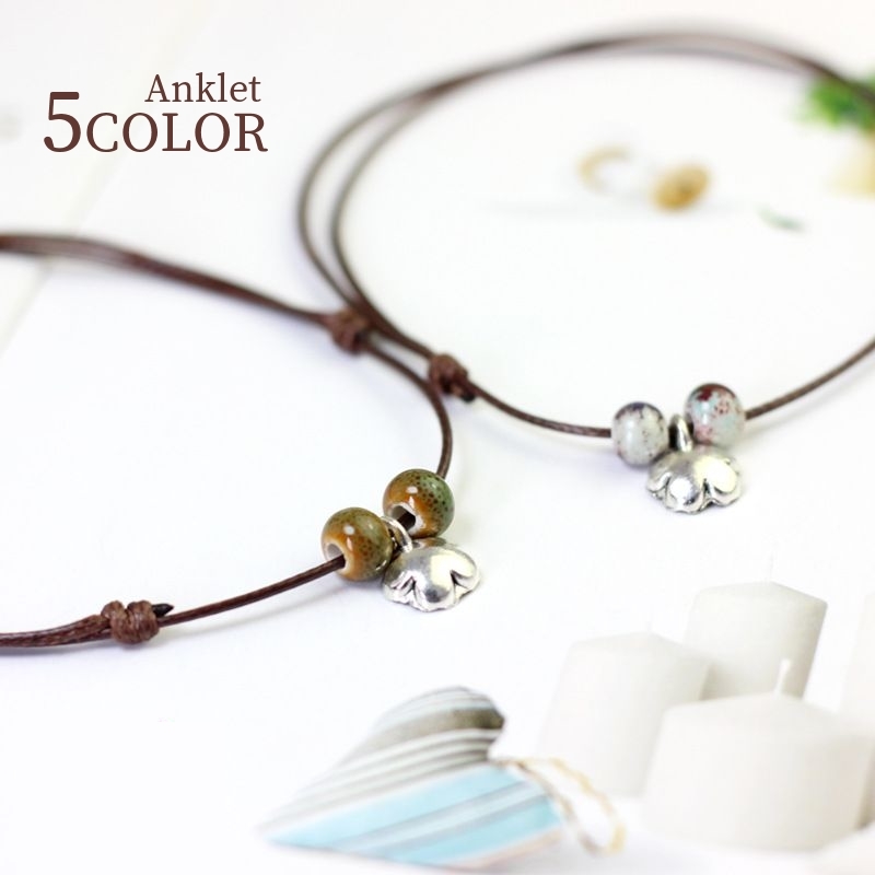 アンクレット ユニセックス レディース メンズ 女性 男性 男女兼用 ファッション小物 雑貨 紐 フラワー 花 ブラウン レッド シンプル かわいい