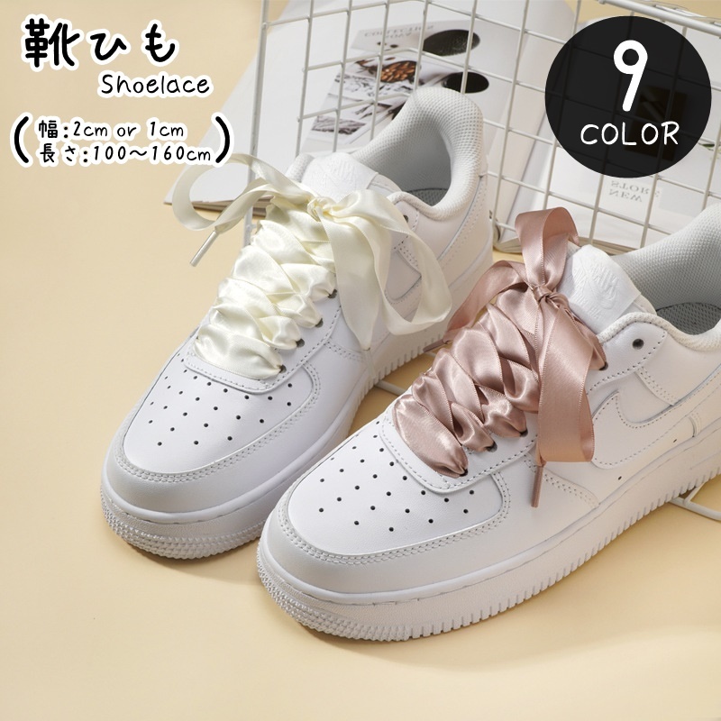 サテンリボンのように、幅広で艶のあるデザインが可愛い靴ひも。