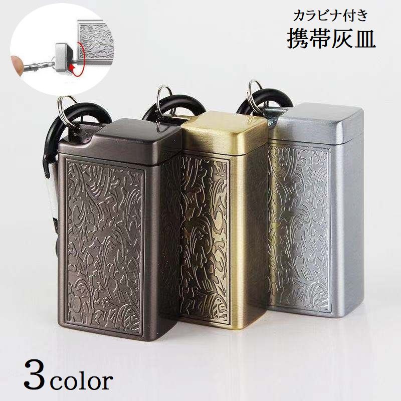 携帯灰皿 アッシュトレイ カラビナ付き 蓋付き 吸い殻入れ 喫煙具 小型 ポータブル コンパクト 持ち歩き便利 フタ付き お出掛け プレゼント 贈り物