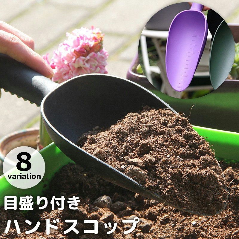 ハンドスコップ ハンドシャベル 目盛り付き ガーデニング 園芸用品 植え替え 鉢植え 庭 お手入れ DIY 無地 単色 シンプル