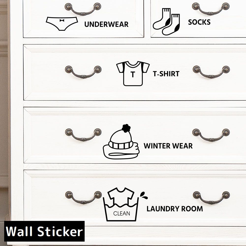 ウォールステッカー 衣装ケース ランドリー 洋服 イラスト 子供 目印 透明 クリア 片付け 園児 整理 整頓 子ども タンス クローゼット 引き出