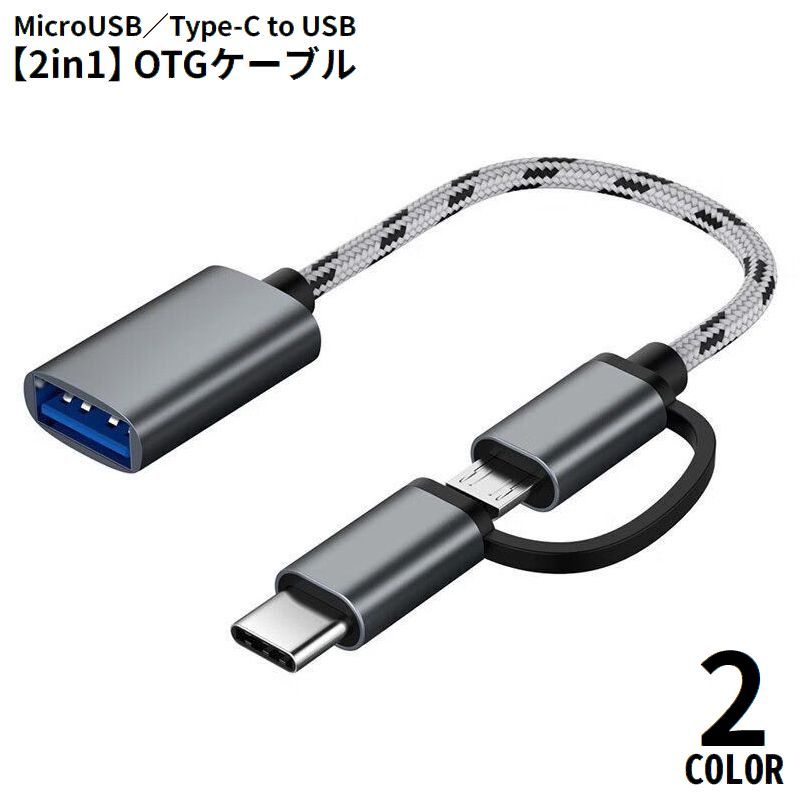 OTGケーブル 2in1 MicroUSB Type-C to USB変換アダプター 充電 通信 データ転送 スマホ タブレット