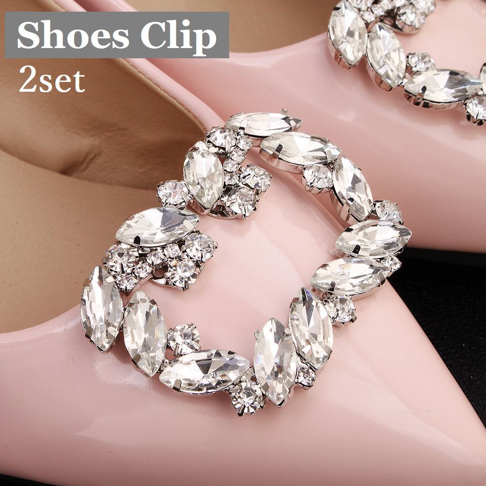 シューズクリップ シューパーツ 2個セット ビジュー 靴飾り レディース シューズアクセサリー 結婚式 パーティー おしゃれ 1足分