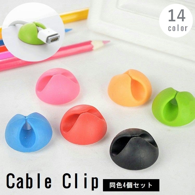 USBケーブルや充電コードを掛けてスッキリ整理できる、ケーブルクリップ4個セットです。