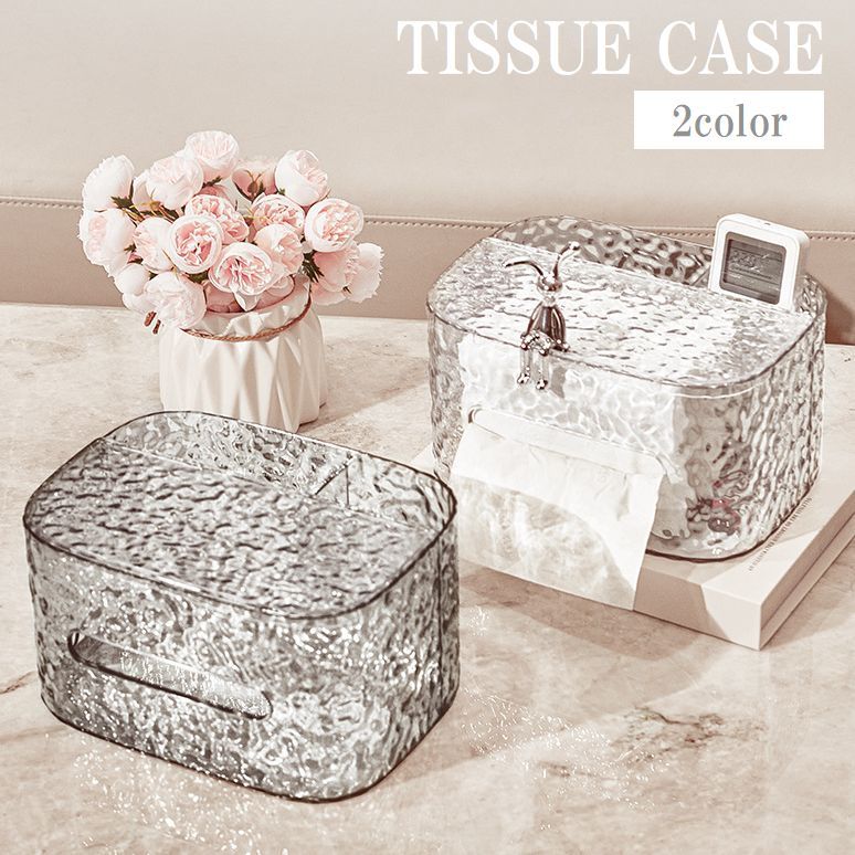 ティッシュケース ティッシュホルダー 収納ポケット付き リモコン入れ付き クリア 透明 コンパクト おしゃれ シンプル リビング ダイニング 洗面所