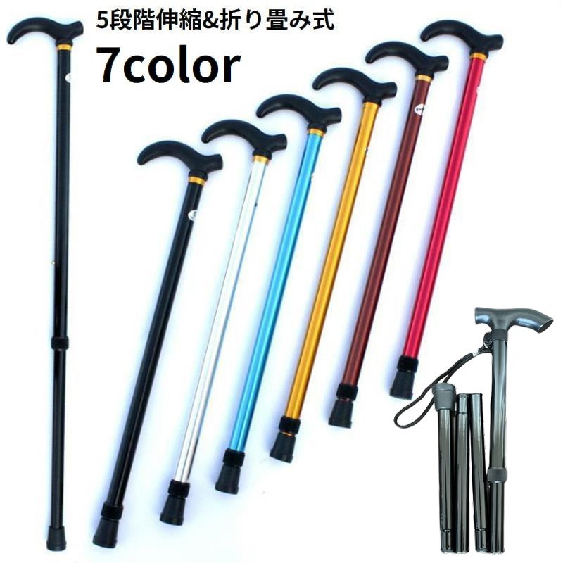 杖 ステッキ 男女兼用 高齢者 折り畳み 5段伸縮 長さ調整 軽量 滑り止め 握りやすいグリップ アウトドア 登山 ウォーキング