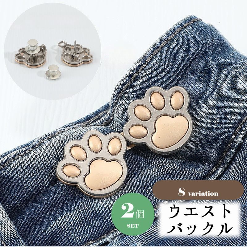 ウエストバックル 2個セット ウエストアジャスター ウエスト調整 クローバー 肉球 フック ピン ボタン ジーンズ デニム ズボン スカート ボトムス