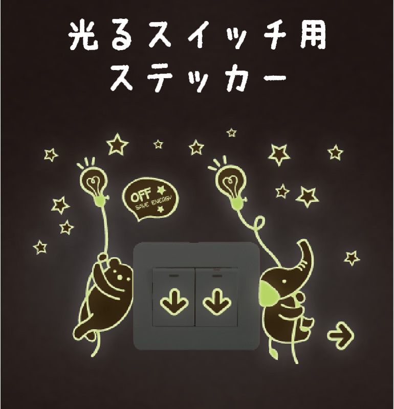 光るスイッチステッカー 電気スイッチ用ステッカー ウォールステッカー 壁紙シール 夜光 蓄光 ウォールシール 夜光シール 夜光ステッカー 動物 アニマ