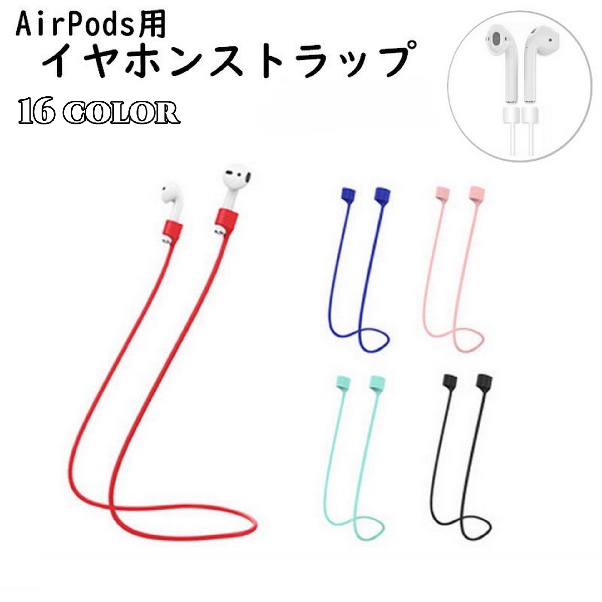 イヤホンストラップ AirPods用 ネックストラップ 首掛け ワイヤレスイヤホン用 イヤホンアクセサリー イヤホンホルダー シリコン 落下防止 カラ
