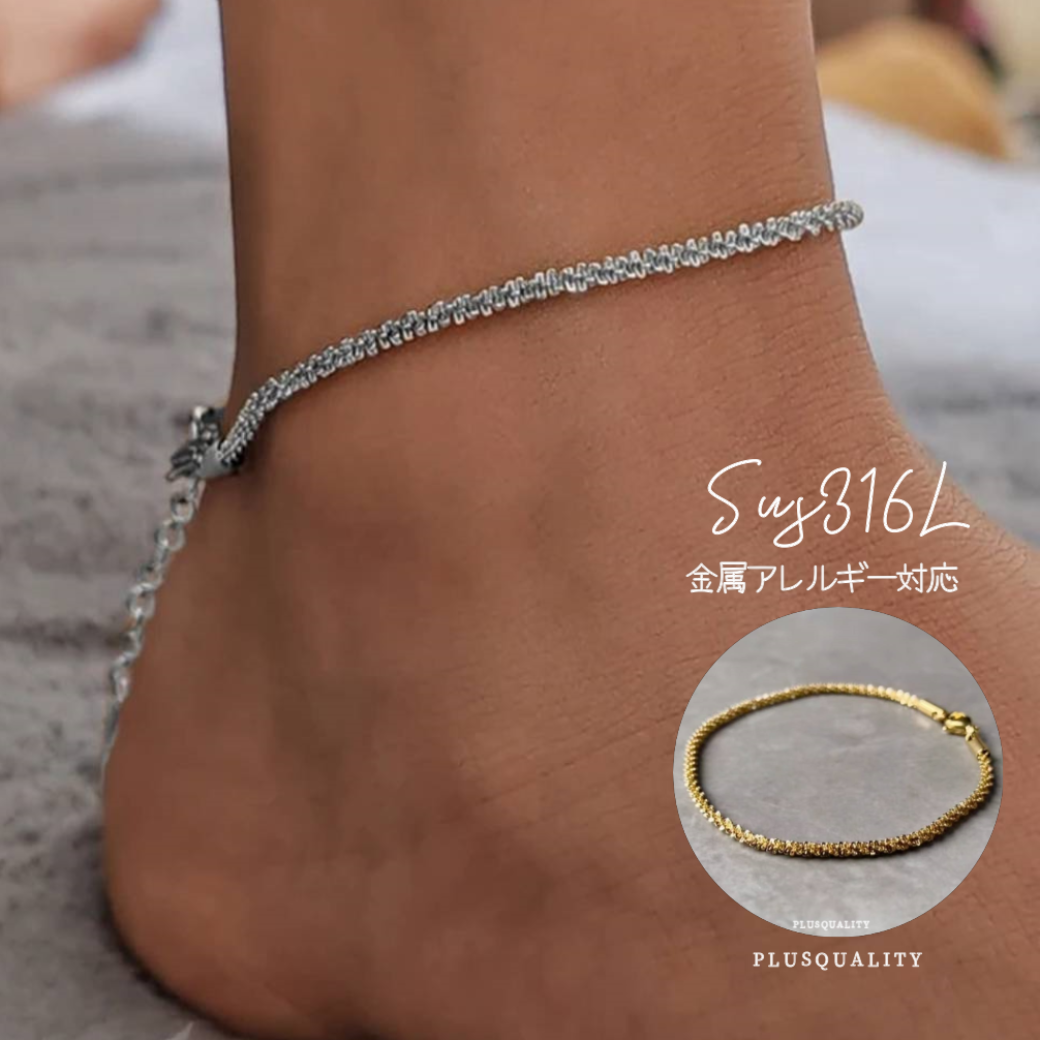 アンクレット ステンレス アレルギー対応 レディース サージカルステンレス つけっぱなし 18金 k18 アンクレット 爆買