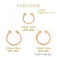 【素材・商品サイズ】直径:約13.0mm 内径:約10.5mm ポール直径;約2.4mm 線径:約1.3mm 素材:K18YG(18金素材/イエローゴールド)