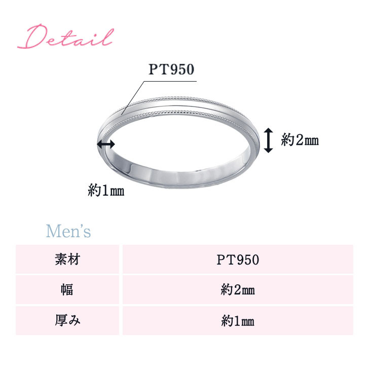 ●スペックリング幅:約2mm 厚み:約1mm(男女共通)