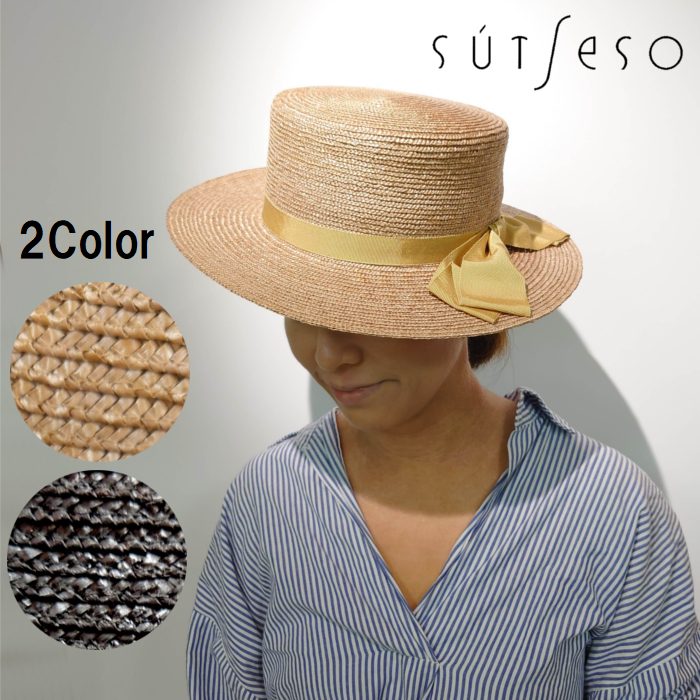 【最終値引】カンカン帽 日本製 風とび防止フック付き 033-06157 sutseso 帽子 ハット 麦わら帽子 天然素材 大きさ調整可能 黒 リボン 商品入れ替えの為 sb