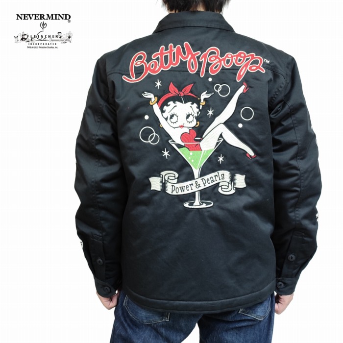薄中綿 T/C ツイルジャケット カクテルベティ 刺繍 裏はキルティングの赤色 bbn-2518 NEVERMIND ベティーブープ ネバーマインド アメカジ 商品入れ替えの為