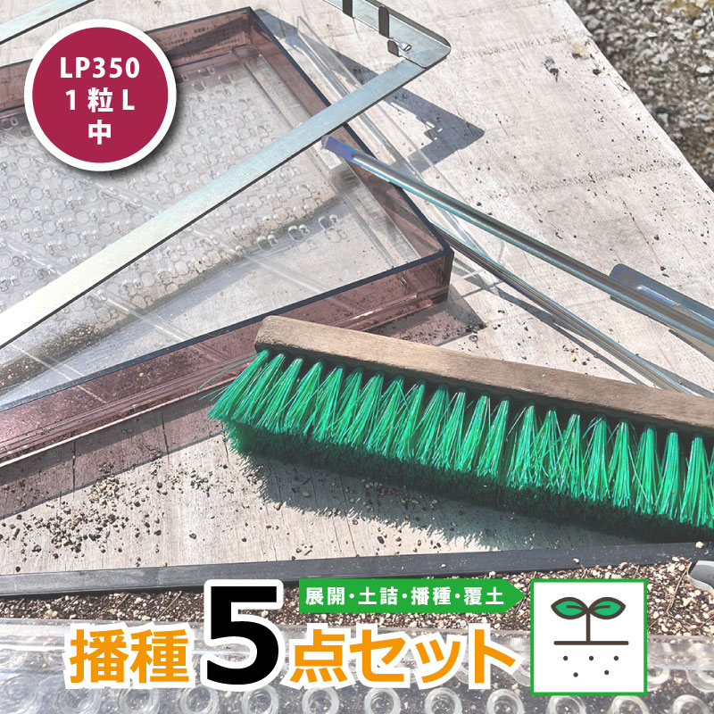 「播種5点セット LP350 1粒L-中」は、日本甜菜製糖株式会社のチェーンポットの播種作業が簡単にできるセット商品です。チェーンポットを展開し、土詰、播種、覆土まで、播種作業が簡単にスピーディーに行えます。家庭菜園から、農家の方まで幅広く使かわれています。