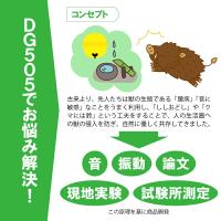 イノシシびっくり DG505は、『イノシシ・クマ・タヌキ』などの害獣対策の警報器です。 スイッチを入れるだけの簡単操作で、作動・停止を繰り返し鳴子が発音体にあたることで 200〜800Hzの人の話し声ほどの音を発生させ害獣を寄せ付けません。また、電気柵などと違い 季節により利用する場所が変わる場合も簡単に移動や設置ができます。