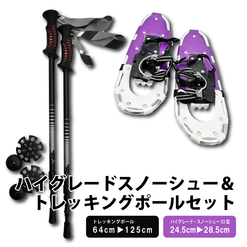 スノートレッキングにおススメの「ハイグレード スノーシュー 53型」と「TS-125トレッキングポールセット」を1セットにしてお届けします。