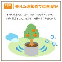 ポリエステル100%不織布製ポット「ルートラップポット」。不織布は通気性・排水性に優れ、根の生育を妨げません。細根が十分に発達し、定植後の生育も良好になります。