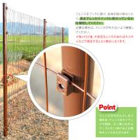 プラスワイズ オリジナル の アニマルフェンス ブラウン は、通常の アニマルフェンス グリーンと比較すると先端部が丸く加工している為、 打ち込みやすく作業時間が短縮できます。また、PVCコートワイヤーを使用しているので、丈夫でさびにくく、長持ちします。