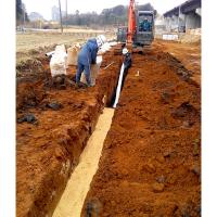 暗渠パイプに透水シートをセットしているので、目詰まりを防ぎ、排水効果を長期間持続させます。