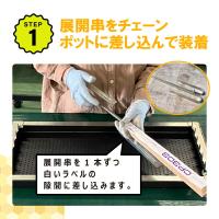 1.展開串をチェーンポットの白いラベルの隙間に差し込みます。