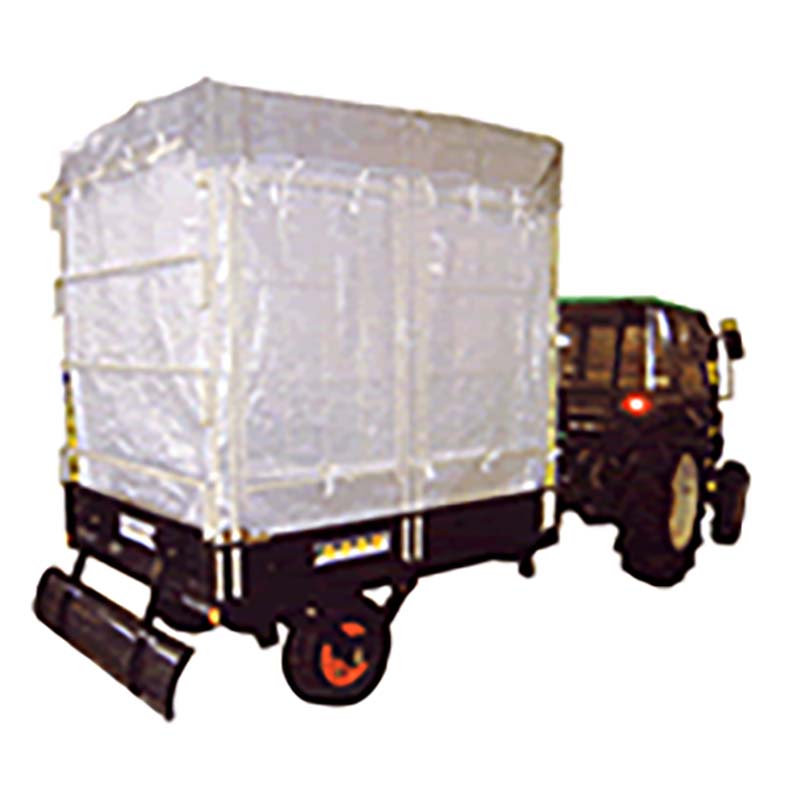後部シートのチャックを開きトラクター油圧を上げますと、