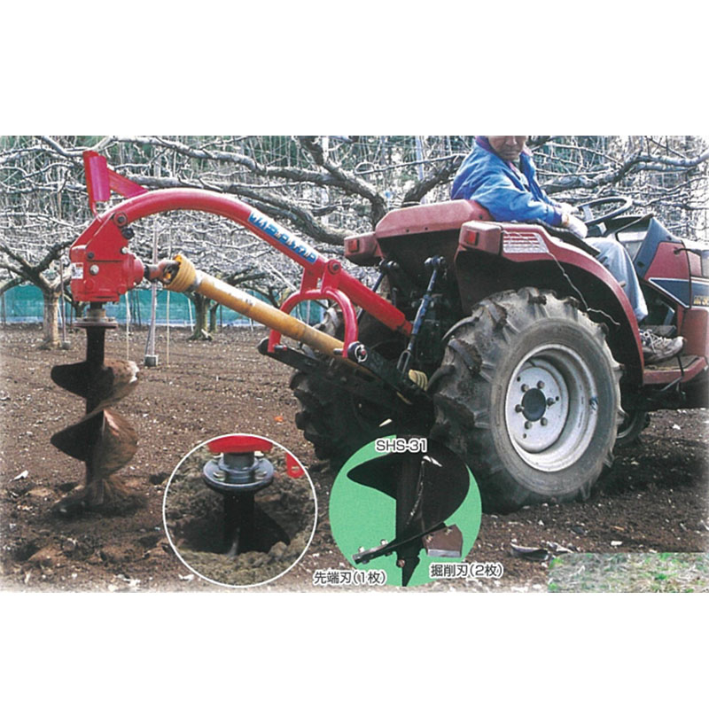 トラクタに取り付けて深さ600mm、150mm径の穴が30秒で!