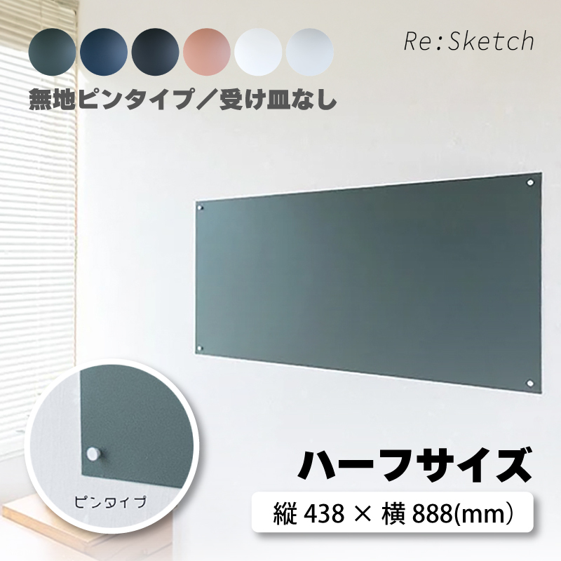 インテリア黒板 Re:Sketch ハーフサイズ 無地 ピンタイプ 受け皿なしタイプ リスケッチ Canvas 磁石 マグネット 金属 ガルバリウム 簡単 DIY 神田板金 代引不可