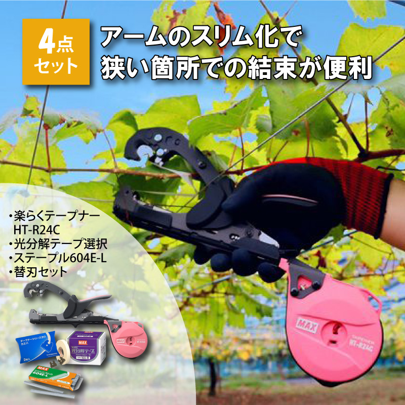 テープナー4点セット 楽らくテープナー HT-R24C スリムタイプ 光分解テープ選択 ステープル604E-L 替刃セット 園芸用 誘引結束機 誘引 結束 マックス MAX
