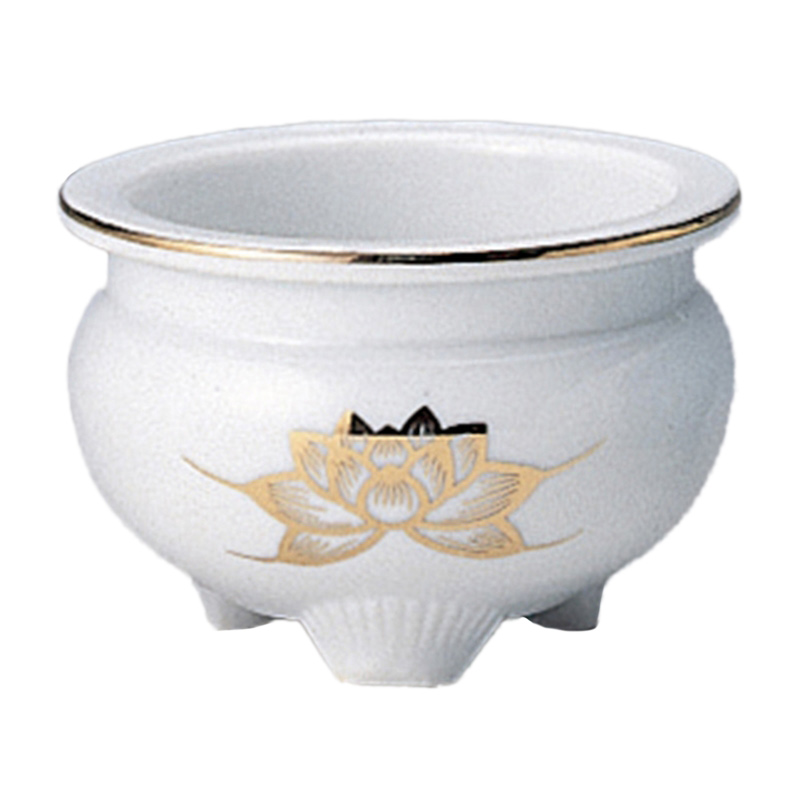 香炉 三ツ足 白金ハス 22002 2寸 和柄 日本 絵 画 仏具 仏前 供養 葬祭 葬式 Funeral 葬儀 T陶 代引不可