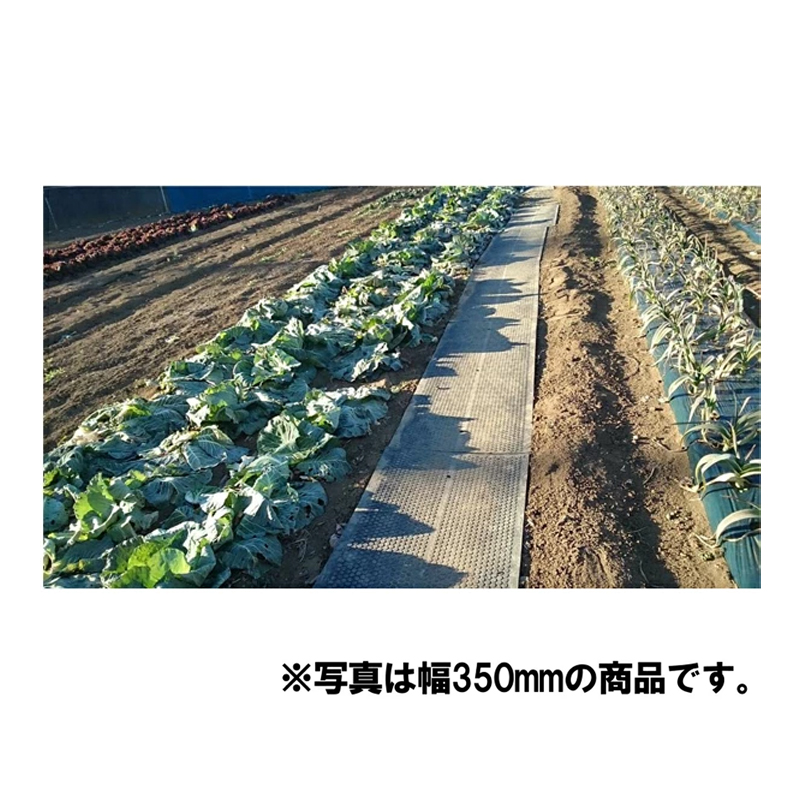 畑などで作物間の通路に敷いていただくゴムマットです。特に梅雨の時期や霜の降りる時期など、ぬかるんで足場が悪くなる時期に敷いていただくと作業がしやすくなります。また、農業機械の移動がスムーズに行えたり、観光農園など人の通行が多い場所などは適しています。種苗用ハウスの歩行路、選果場など足元に敷くことにより、作業者の疲労が軽減されます。パターン型はイボタイプ、コインタイプの2通りとなっております。裏面がクッション性のある素材の製品もございます。 厚さ:5mm幅:350mm長さ:4m