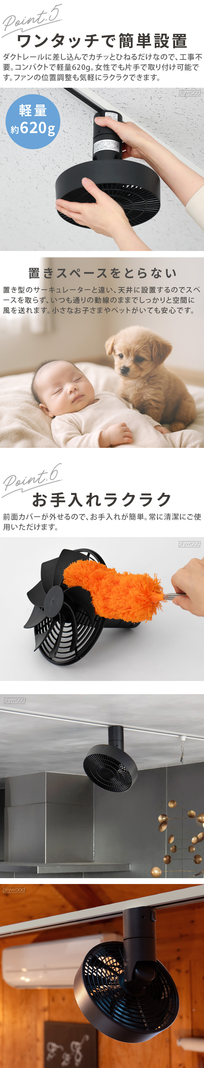 | 本製品は、一般屋内ライティングダクト専用天井直付器具です。注意事項をよくお読みになってご使用ください。 調光器(ライトコントロール)との併用は出来ません。 ホタルスイッチ、調光機能付きスイッチ、調光コントローラーの壁スイッチではご使用いただけません。 取付の際には壁スイッチを「OFF」した状態で設置をお願いします。壁スイッチが「ON」になっている場合、レールに取り付けた時点で羽根が回転し始めますのでご注意ください。 調光機能付きには使用不可になります。予めご了承下さい。 取り付け方向を間違えますと外れなくなります。また無理に外そうとすると破損の原因となります。ご注意ください。 本製品(付属品を含む)は日本国内専用器具です。海外の規格には準拠しておりません。表示された電源電圧以外では絶対に使用しないでください。器具の破損、故障の原因になることがあります。 |
