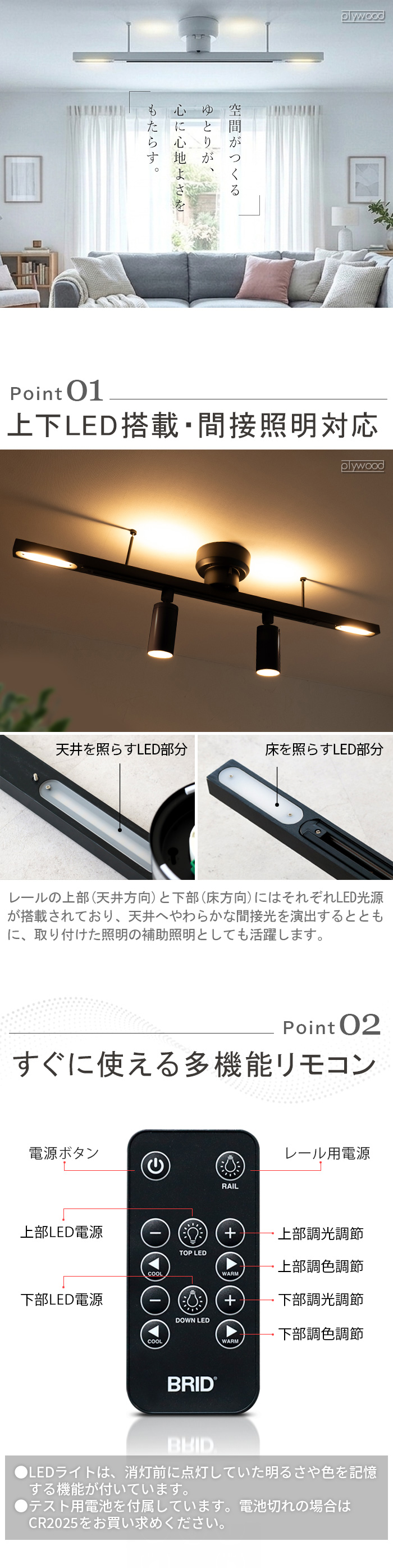 | ・上部/下部LEDライト(LEDライト単体使用可能) ・調光6段階 ・調色6段階(電球色-昼白色) ・光束 100lm-800lm ・色温度3,000K-5,000K |
