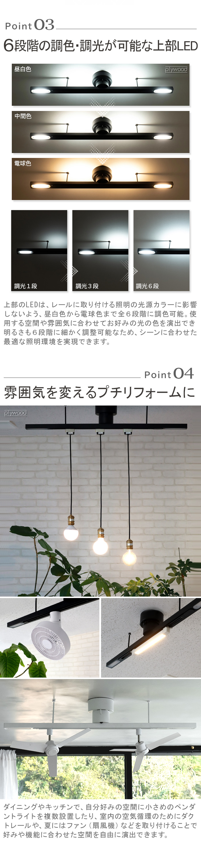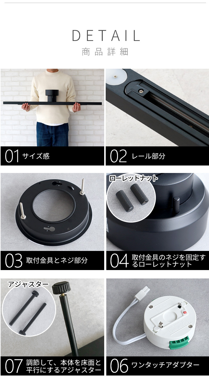 多灯使いやスポットライトの取り付けに便利なダクトレール 工事不要で、既存のローゼットや引っ掛けシーリングに簡単に取り付けられる照明用ダクトレール。多灯使いやスポットライトの設置にも便利です。 |